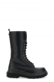 Iconici stivaletti alti allacciati in similpelle nera stile combat. fodera in tessuto suola robusta alta 4 cm. best seller versatili dal look grintoso e urban