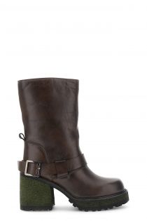 Stivaletti in pelle nera con cavigliera e fibbia tacco alto 9 cm rivestito effetto suede suola carrarmato. interno con zip e soletto in pelle. grinta e stile per l’inverno.