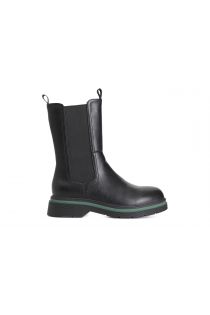 Stivaletto 3/4 donna in similpelle di colore nero. elastico laterale per agevolare la calzata. suola in gomma con banda colorata di verde tacco da 40mm.