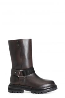 Stivaletto donna in pelle con cavigliera removibile arricchita da un particolare nastro nero logato cafènoir e borchie di tendenza. il soletto è in pelle.