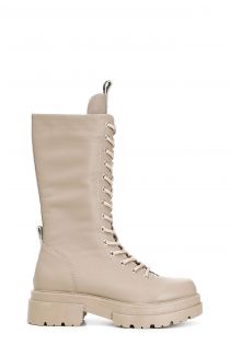 stivali allacciati in pelle con dettagli cavallino