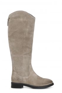 Stivali alti in pelle scamosciata modello texano nella parte superiore. Tacco basso.