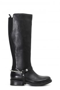 Stivali in pelle modello Cavaliere, con cavigliera e accessorio metallico.