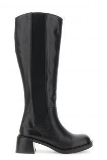Stivali in pelle con elastici laterali forma comoda e calzata pratica. design essenziale e tacco grosso da 6 cm. perfetti per un look contemporaneo e confortevole.
