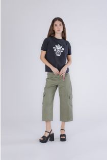 T-shirt a scatolina in cotone elasticizzato dal look vintage ottenuto con lavaggio a freddo. la stampa frontale con vaso di fiori stilizzati e paillettes aggiunge luce e stile perfetta con jeans o pantaloni casual. la modella è alta 175 cm e indossa la taglia s. vestibilità: regular.
