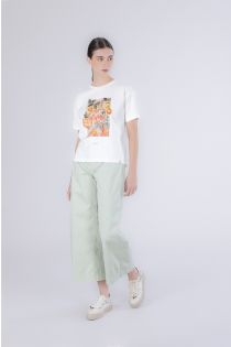 T-shirt girocollo con manica corta in jersey di cotone elastico confortevole e versatile. la stampa multitecnica sul davanti con scritta “la douce vitamine” dona un mood fresco e solare ideale per look estivi casual chic. la modella è alta 171 cm e indossa la taglia s. vestibilità: regular.