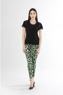 T-shirt in jersey di cotone elasticizzato con stampa effetto laminato che decora scollo ed orlo