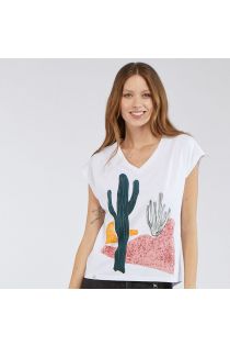 T-shirt in jersey di cotone elasticizzato dalla modelleria morbida e confortevole impreziosita da una stampa multitecnica che riproduce delle dune e dei cactus.