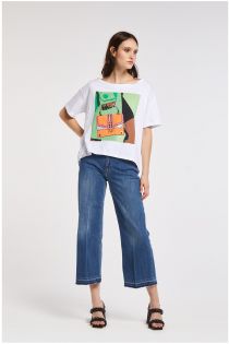 T-shirt in jersey di cotone con stampa davanti che riproduce una borsa gioello