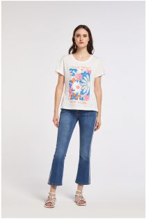 t-shirt in jersey di cotone con stampa floreale e strass bianco