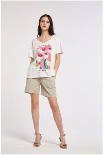 t-shirt in jersey di cotone con stampa floreale e strass bianco