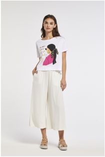 T-shirt in jersey di cotone con stampa multitecnica che riproduce una donna vista di spalle