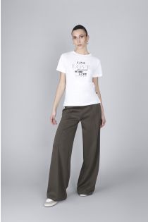 T-shirt a manica corta in cotone elasticizzato con stampa 'live and love' sul davanti. vestibilità regolare e stile casual perfetta per un look fresco e moderno. la modella è alta 173 cm e indossa la taglia s.