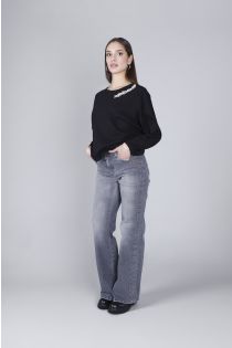 t-shirt manica lunga con applicazione strass nero