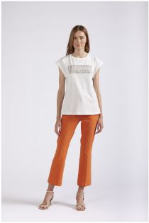 T-shirt smanicata in jersey di cotone elastico. la grafica riproduce il logo cafènoir attraverso strass di colore a contrasto.