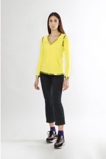 t-shirt scollo a v e manica lunga in jersey con collo laminato