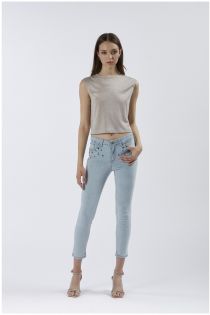 Top corto smanicato tipo sottogiacca realizzato in jersey con lurex.