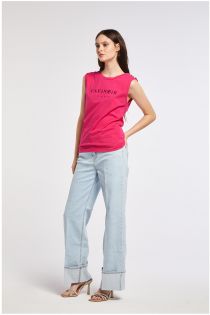 Top smanicato in cotone elasticizzato con stampa logo e bottoni sulle spalle