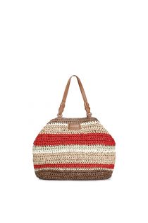 Tote a spalla in crochet fatta a mano chiusura con calamita e passante con moschettone per i fianchi tag con logo in rilievo e lamina dorata.