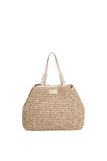 Tote a spalla in crochet fatta a mano chiusura con calamita e passante con moschettone per i fianchi tag con logo in rilievo e lamina dorata.