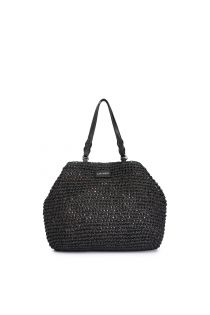 Tote a spalla in crochet fatta a mano chiusura con calamita e passante con moschettone per i fianchi tag con logo in rilievo e lamina dorata.