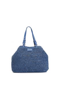 tote a lavorazione crochet con charm colorato a cuore con bordo in rafia blu