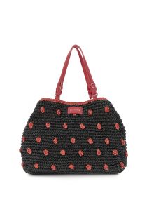 tote a spalla in crochet lavorato a mano e chiusura a calamita e moschettone nero/corallo