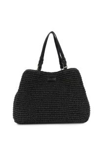 Tote a spalla in crochet lavorata a mano a tinta unita capiente e versatile. dotata di chiusura con calamita passanti con moschettone per regolare i fianchi e tag con logo embossed in lamina dorata perfetta per look estivi. dimensioni: 44 cm (lunghezza) × 31 cm (altezza) × 15 cm (profondità)