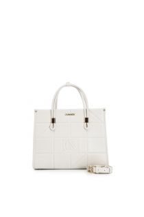 tote bag con pannello di quadrati in rilievo panna