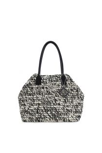 tote bag in crochet di carta bicolore nero