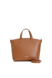 Tote rigida con manici. applicazioni di rivetti laterali e sugli angoli. chiusura con zip. borsa provvista di un comodo scomparto e di un taschino con chiusura a cerniera. borsa dotata di tracolla.
