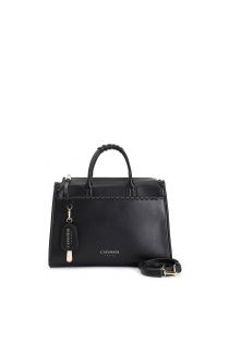 Tote donna con manici intrecciati tasca frontale con dettaglio infilatura e charm decorativo. eleganza e funzionalità per un look sofisticato e pratico.