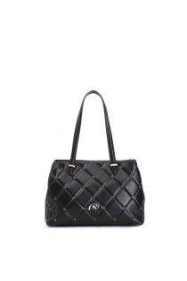 Tote con trapunta a rombi con applicazione di rivetti in tono e logo cafènoir bicolore. tasca interna con zip. chiusura con cerniera.