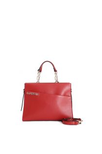 Tote raffinata con tasca asimmetrica decorata da lettering in metallo. manici imbottiti arricchiti da dettagli a catena e pratica. tracollina removibile per un look versatile.