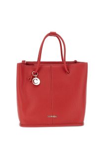 tote effetto pelle con manici tubolari, charm in metallo rosso