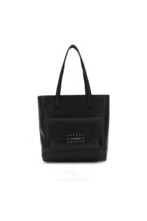Shopping in materiale sintetico con tasca frontale con applicazione di l logo e rivetti. unico scomparto interno con taschino con cerniera.