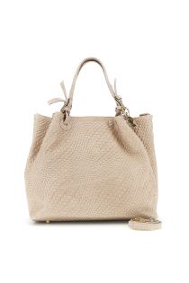 tote in pelle stampa intreccio con charm in metallo e tracolla removibile cipria