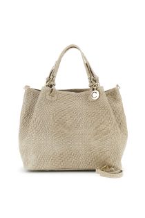 tote in pelle stampa intreccio con charm in metallo e tracolla removibile taupe