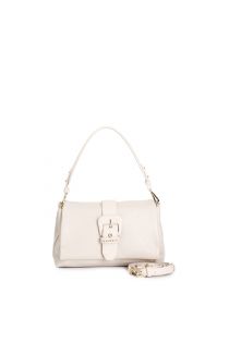 Tracolla con pattina monogram embossed passante e fibbia rivestita tasca posteriore aperta doppia tracolla rimovibile: una lunga e una corta lettering in metallo.