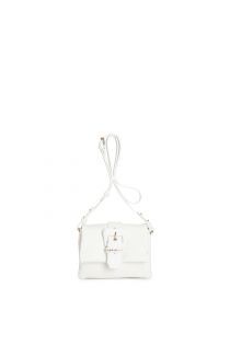 Elegante tracolla piccola con pattina monogram embossed fibbia rivestita lettering in metallo tasca posteriore e tracolla regolabile. stile e praticità per ogni occasione
