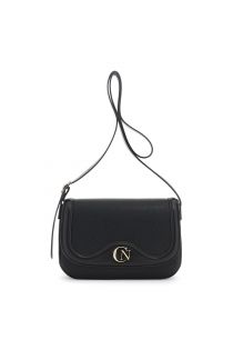 Borsa a tracolla regolabile in similpelle effetto pelle granosa con pattina sagomata cornice imbottita e logo cafènoir in metallo per un tocco distintivo ed elegante.