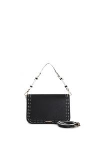 Borsa a tracolla con pattina decorata da mini rivetti bicolore e costole a contrasto. dotata di tramezza con zip tracolla corta con spallaccio e tracollina removibile.