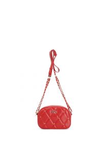 tracolla con trapunta a rombi con applicazione di rivetti e logo bicolore rosso