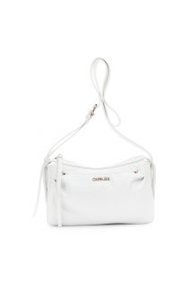 tracolla morbida effetto pelle granosa con applicazione di rivetti metallici bianco