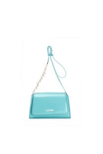 Borsa a spalla con pattina effetto vernice. tracolla con catena e logo charms in controcolore removibile borsa provvista di uno scomparto e di un taschino con chiusura a cerniera. chiusura con calamita.