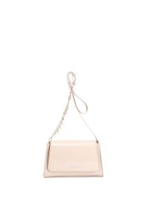 Borsa a spalla con pattina effetto vernice. tracolla con catena e logo charms in controcolore removibile borsa provvista di uno scomparto e di un taschino con chiusura a cerniera. chiusura con calamita.