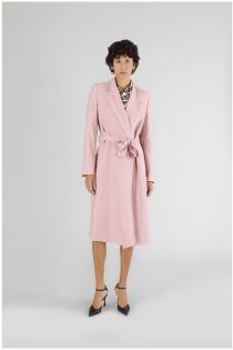 Trench lungo con cintura in tessuto fluido e cascante con tasche applicate.