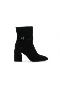 Tronchetti in camoscio con doppia fibbia soletto in pelle e tacco largo alto 8,5 cm. un design raffinato per look eleganti ideali da mattina a sera con stile.