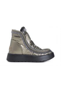 Tronchetti in nylon con fodera in similpelliccia. Logo metallico e suola rialzata. Impunture a vista decorano la bordura.