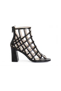 Tronchetti in pelle a gabbia effetto stampato. cerniera sul retro. fodera e soletto sono in pelle. tacco largo alto 8.5 cm. calzatura elegante con stile e formale.